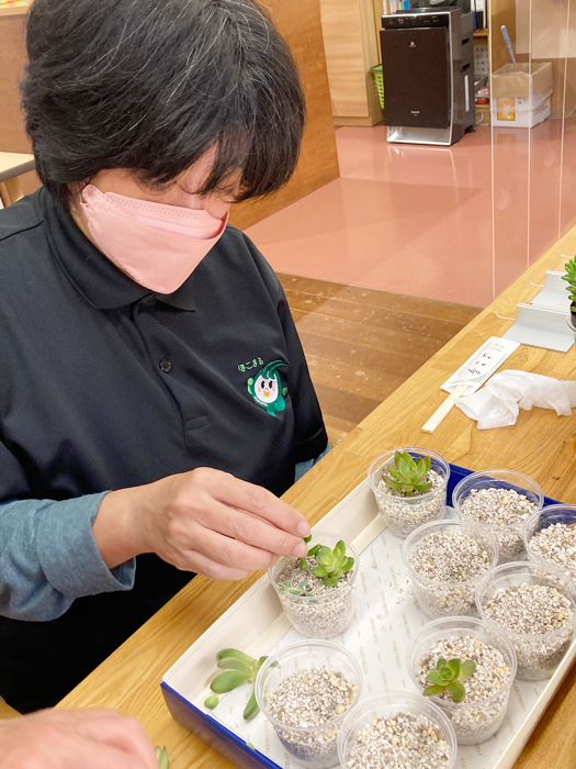 就労継続支援B型は、老健施設内にあるという特徴を活かした作業内容を提供しております。掃除や洗濯に加え、老健施設利用者様への手作りおやつの提供(誕生会等)、施設の中庭を活用した農園での作業などを行っています。