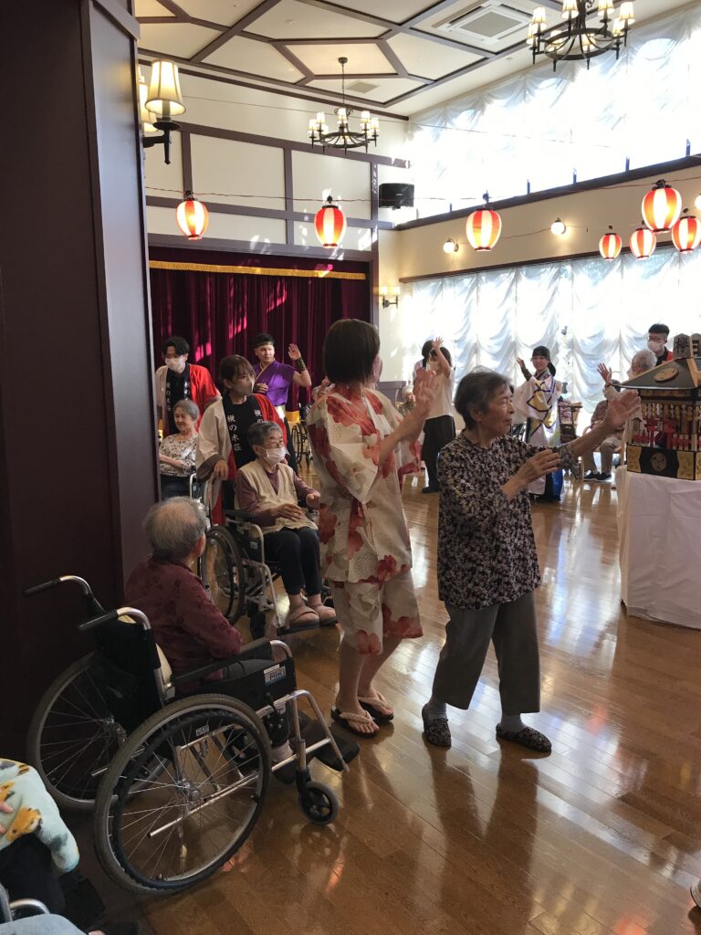 欅倶楽部「秋祭り」を催行しました2025年9月29日 欅倶楽部では恒例の秋祭りを催行しました! 水戸市のよさこいグループYOSAKOI連の皆さまをお招きし、手作りの模擬店(焼きそば・射的・輪投げ・綿あめ・ドリンクコーナー)と共にファミリーと秋を迎えたお祭りを楽しみました。 この日のために半年前から準備してスタッフの手作りの心温まるお祭りが開催できまして、ファミリーの皆さまに大変喜んでいただけました。スタッフの皆さん本当におつかれさまでした。 この暑い夏を乗り切ってくださり、共に秋を元気に迎えてくださいましてありがとうございます。 笑顔がいっぱいで嬉しいお祭りでした。 カテゴリー:新着情報欅倶楽部