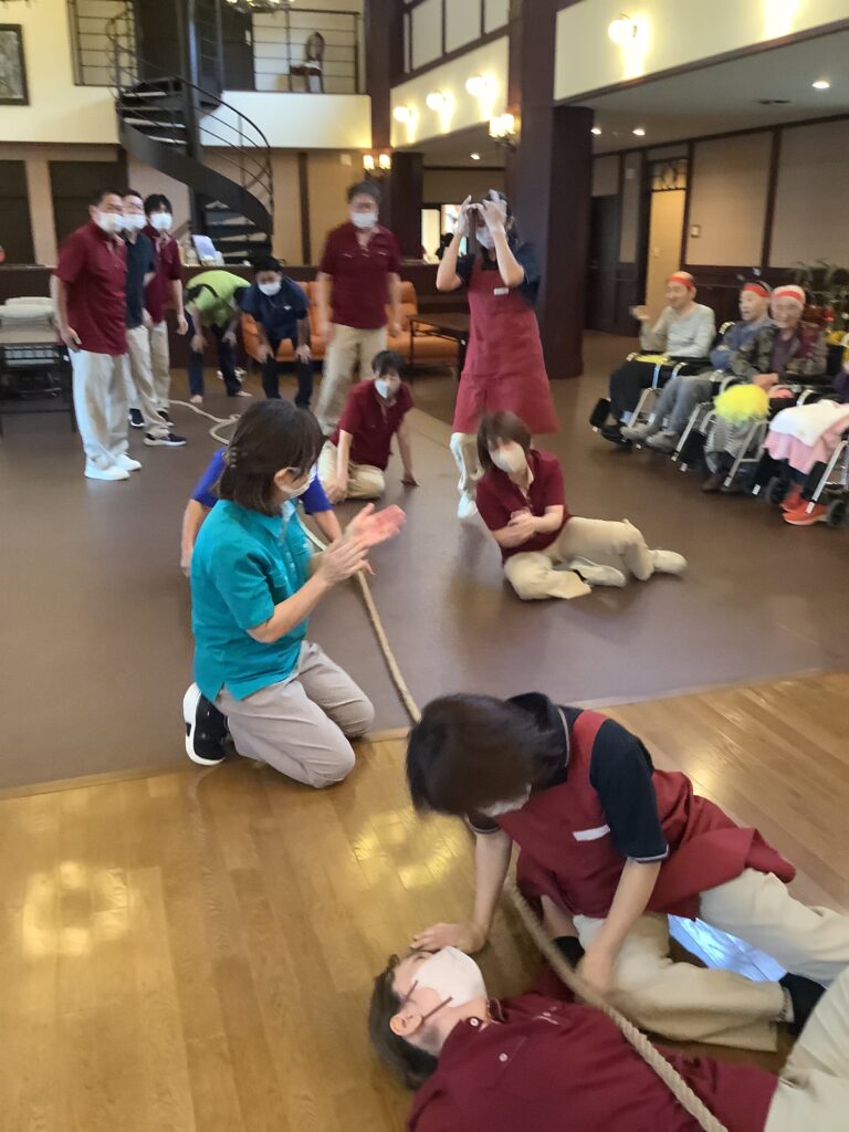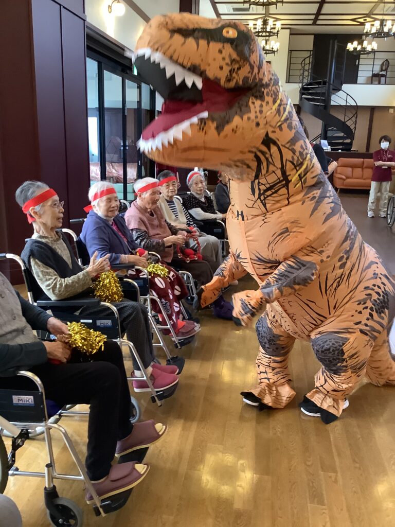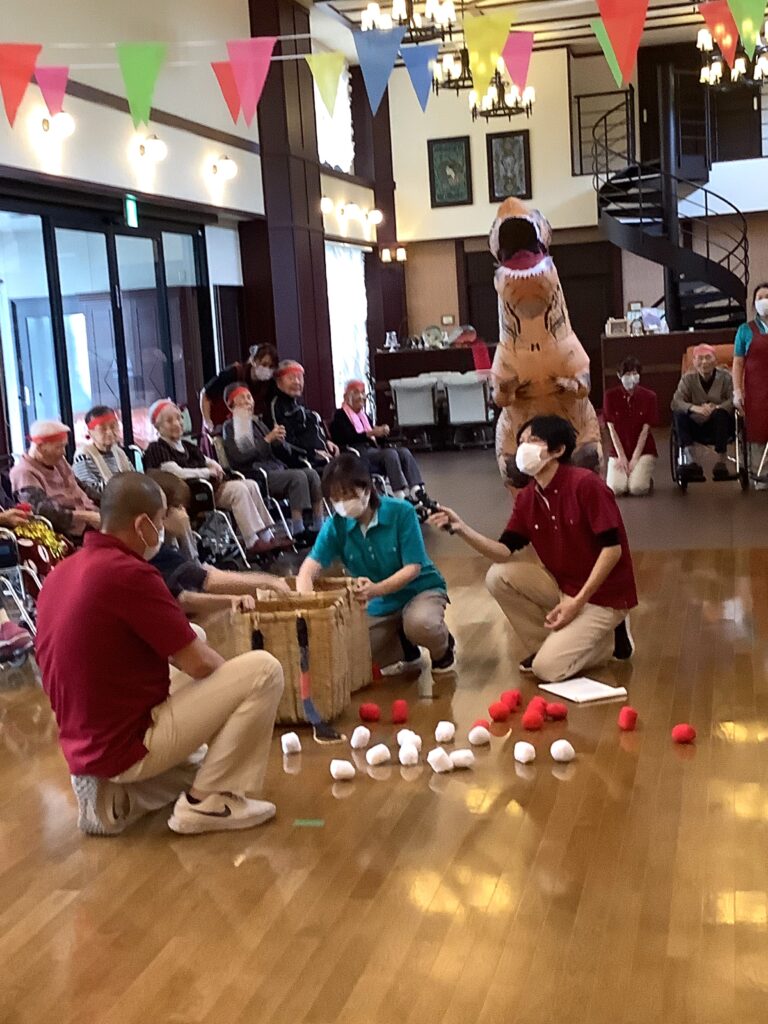 欅倶楽部 秋の運動会を開催しました!2025年10月27日 欅倶楽部では毎年恒例になりました「秋の運動会」を開催しました! 選手宣誓からはじまり、玉入れ競争・借り物競争・ボッチャ・職員対抗綱引きと大盛り上がりの一日でした。 特別ゲストの恐竜さんも応援に来てくれ、ファミリーと職員が一丸となって楽しむことが出来ました。これから来る冬に備えて体力を付けて、元気に皆さまと明るく過ごしてまいります。 カテゴリー:その他新着情報欅倶楽部